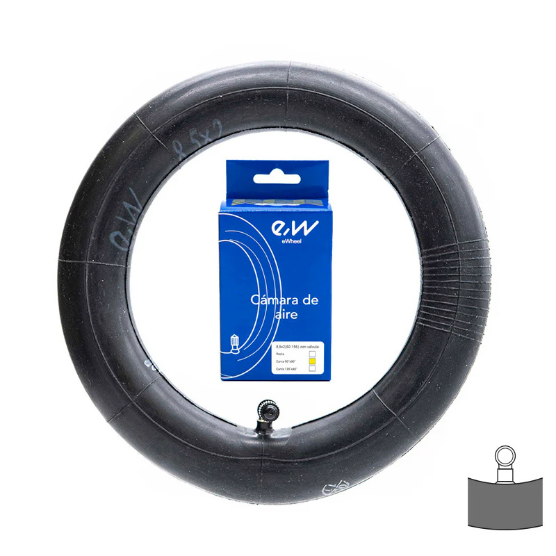 Cámara 8.5×2 con válvula acodada 90º (VC) para facilitar el inflado en llantas estrechas. Repuesto fiable para uso urbano.