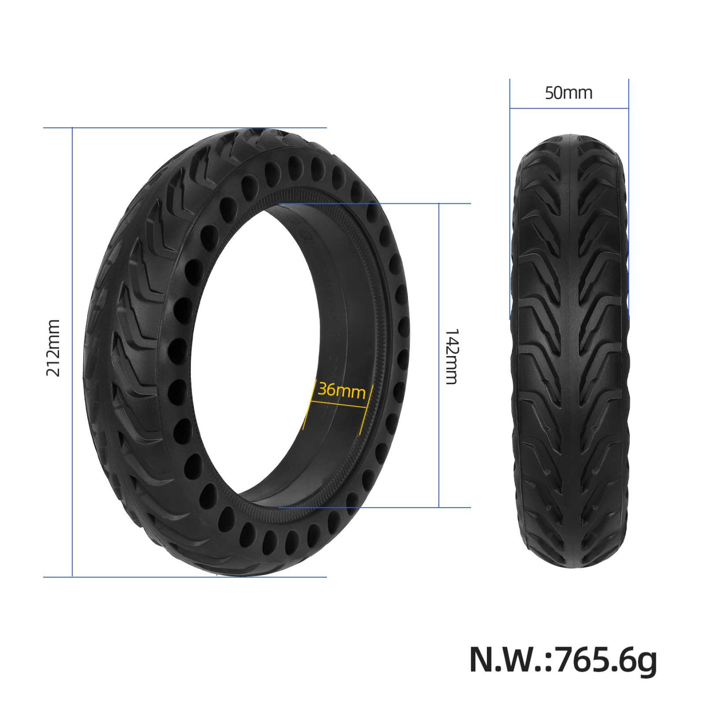 Neumático macizo 8.5×2 (Nedong): olvídate de pinchazos. Diseño con celdas para amortiguar y buen agarre en ciudad.